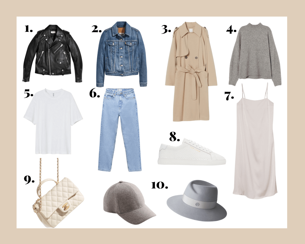 As Spring is very much a season of transitional weather, light jackets and knits will still have a place in your wardrobe if you live in a 4 season climate. The first four items listed below are great as they will work double-duty for you as they will also be staples in your seasonal capsule come Fall, while items 5 through 10 can be carried from Spring into your Summer Capsule.